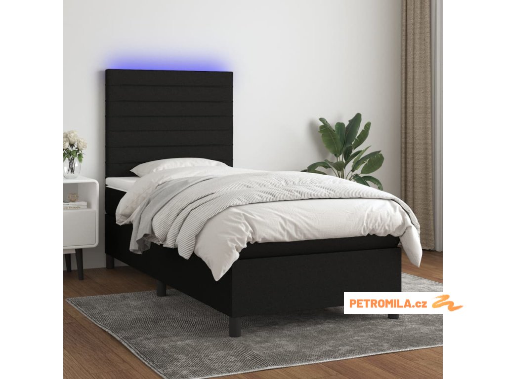 Box spring postel s matrací a LED černá 90x190 cm textil