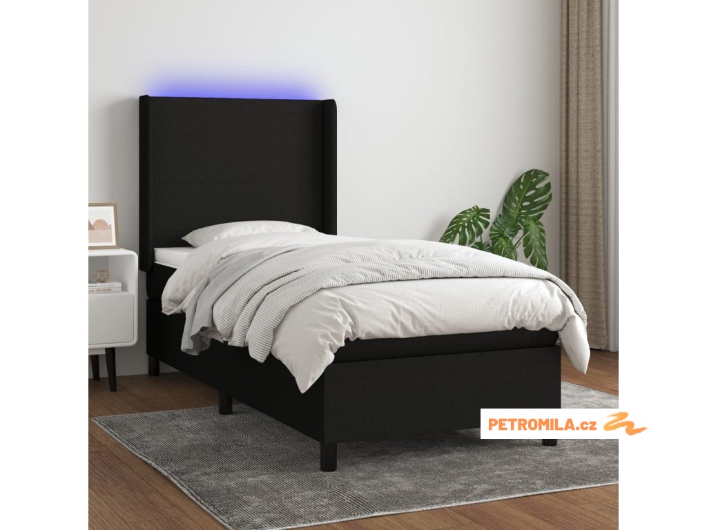 Box spring postel s matrací a LED černá 90x190 cm textil