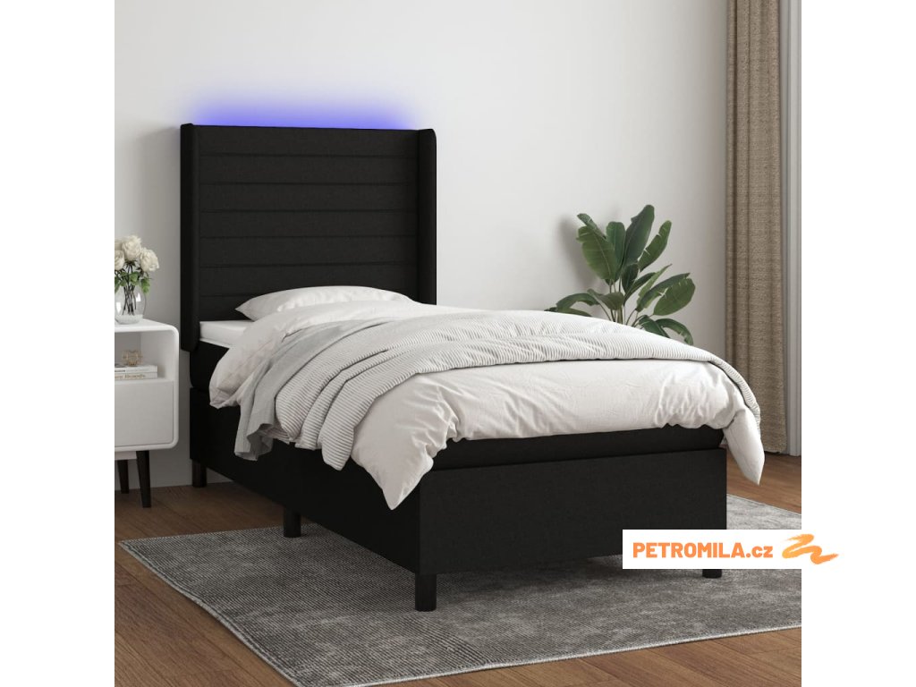 Box spring postel s matrací a LED černá 90x190 cm textil