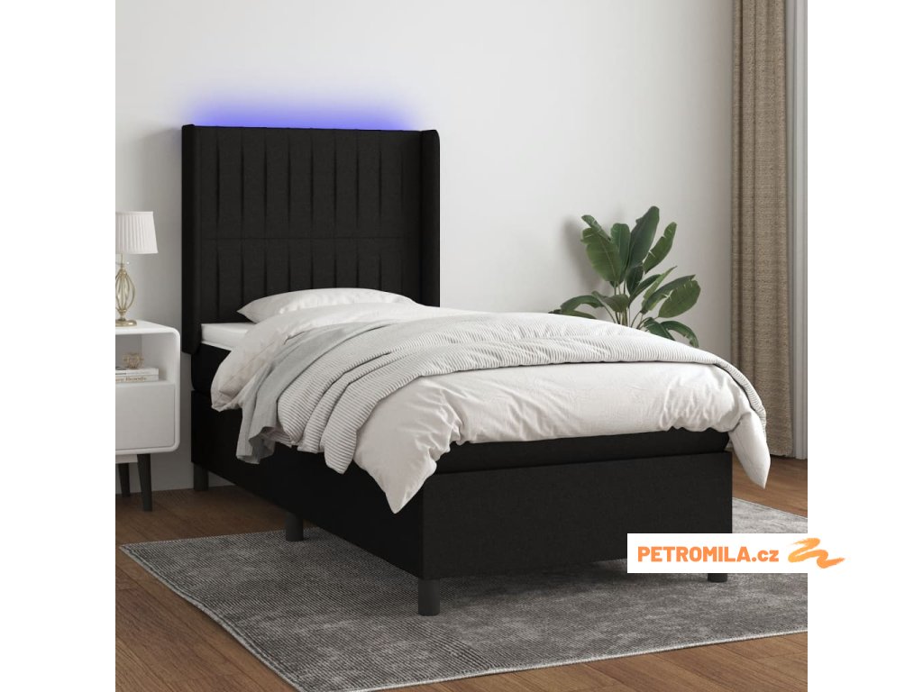 Box spring postel s matrací a LED černá 90x190 cm textil