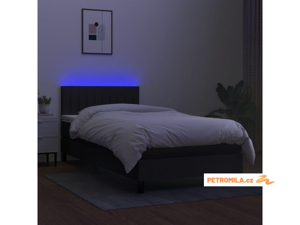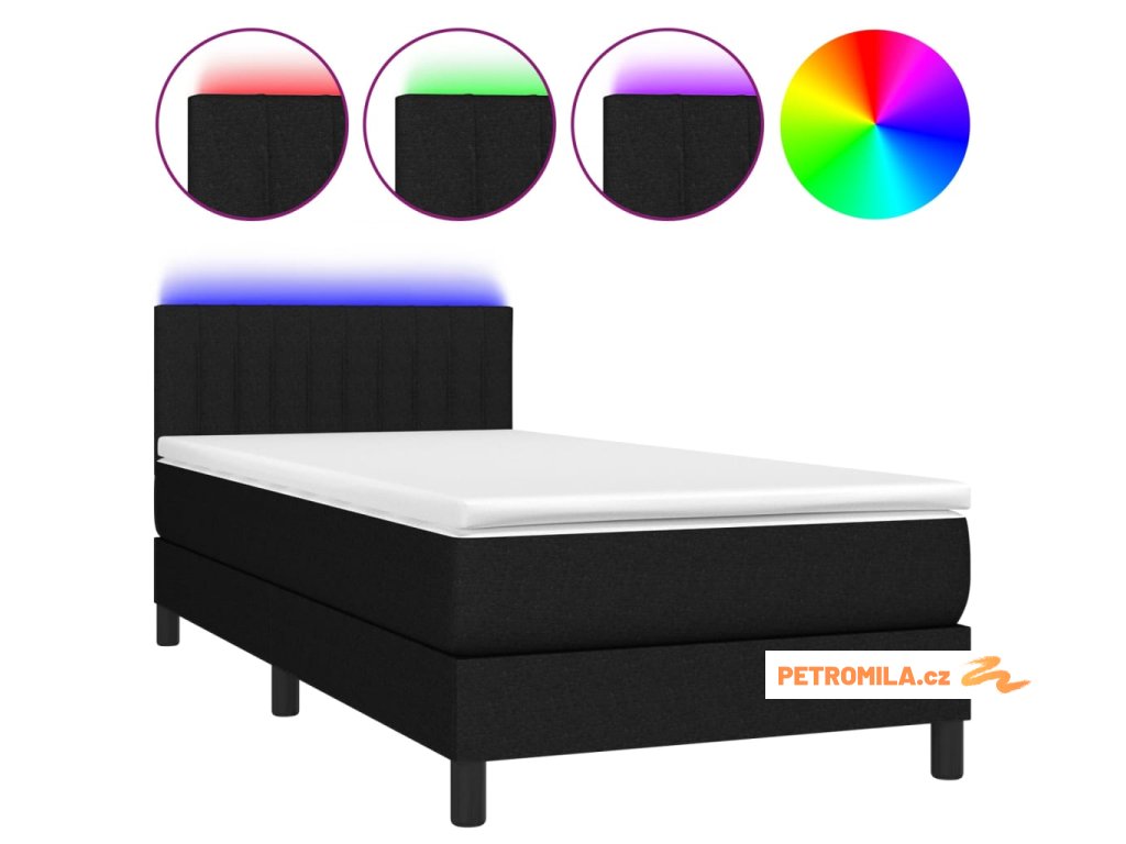 Box spring postel s matrací a LED černá 90x190 cm textil