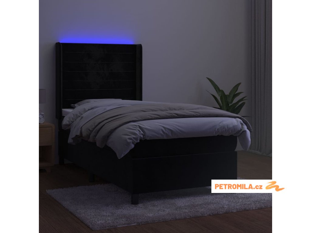 Box spring postel s matrací a LED černá 90x200 cm samet