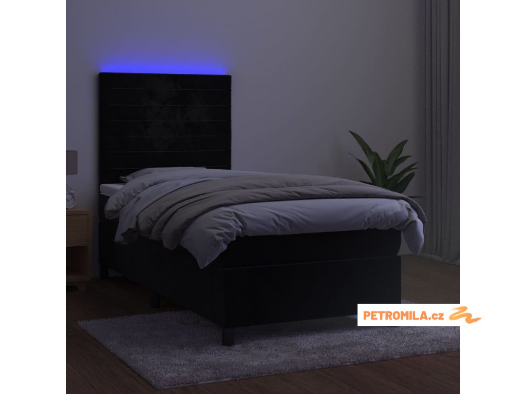 Box spring postel s matrací a LED černá 90x200 cm samet