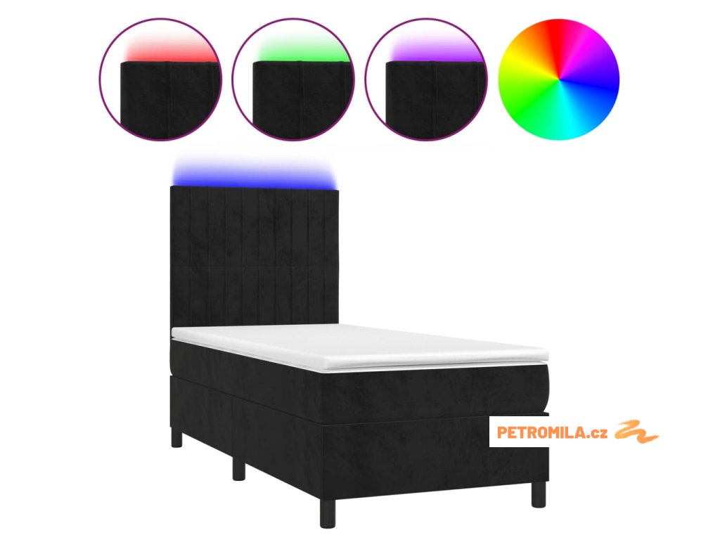 Box spring postel s matrací a LED černá 90x200 cm samet