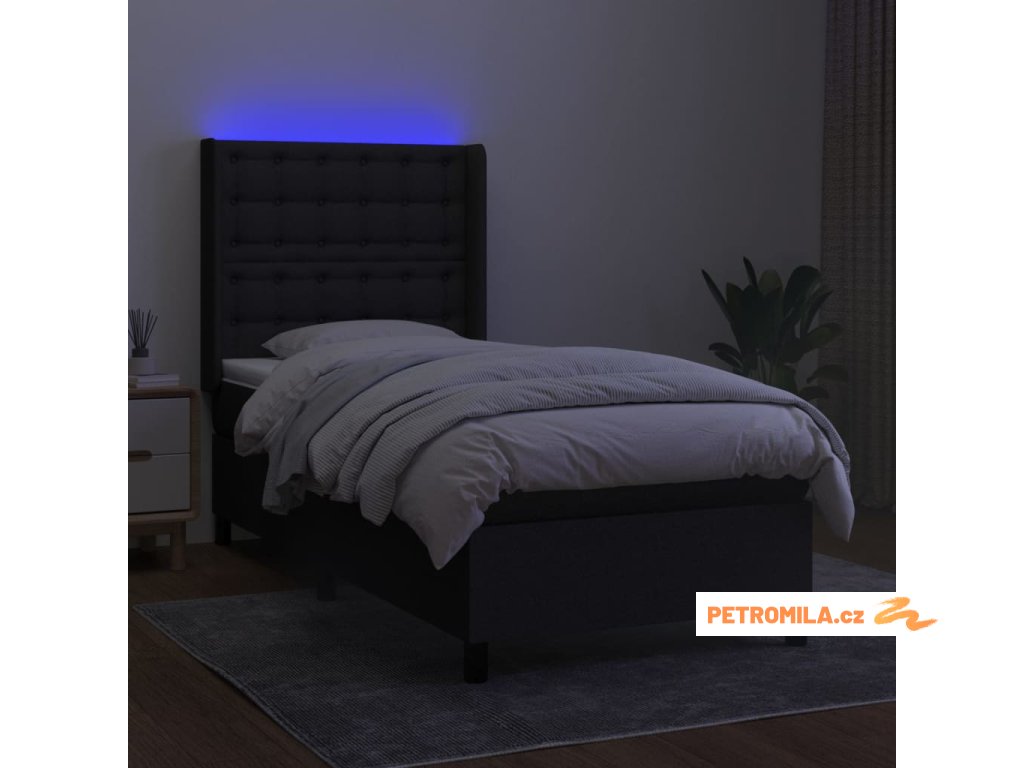 Box spring postel s matrací a LED černá 90x200 cm textil