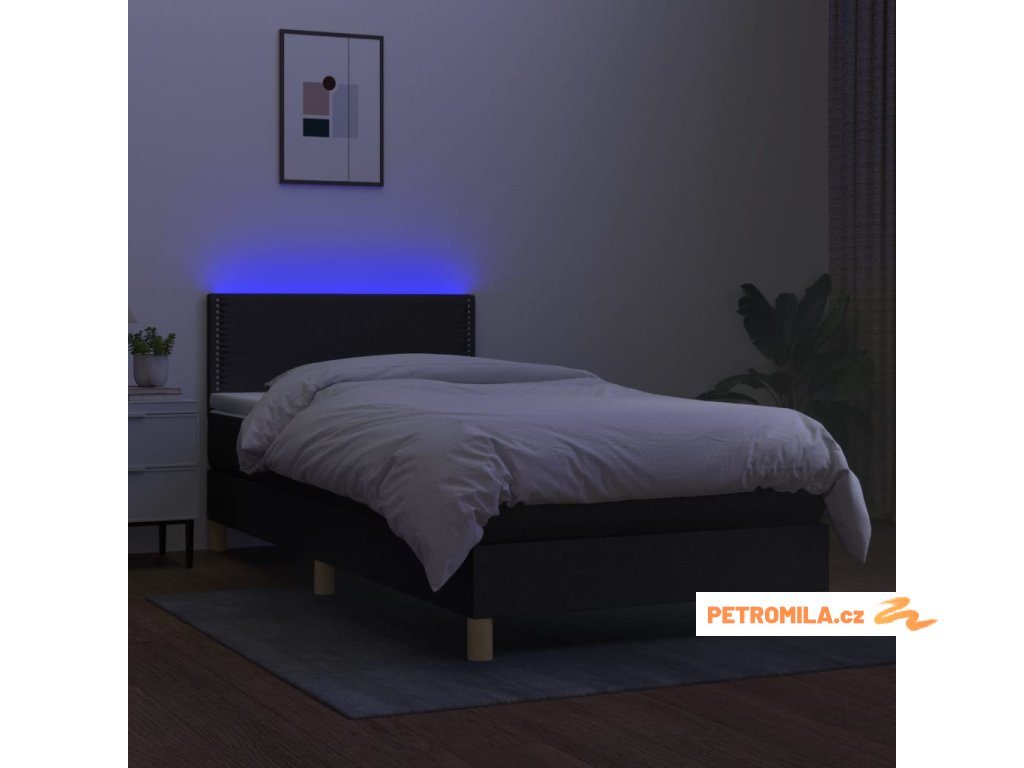 Box spring postel s matrací a LED černá 90x200 cm textil