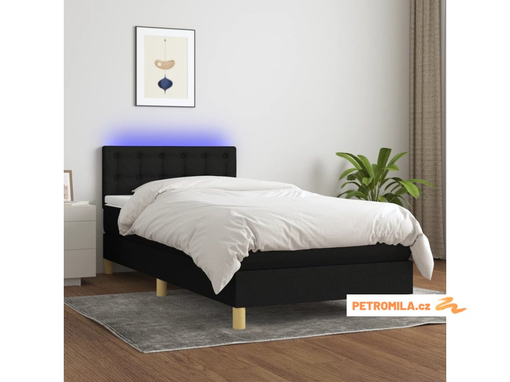 Box spring postel s matrací a LED černá 90x200 cm textil