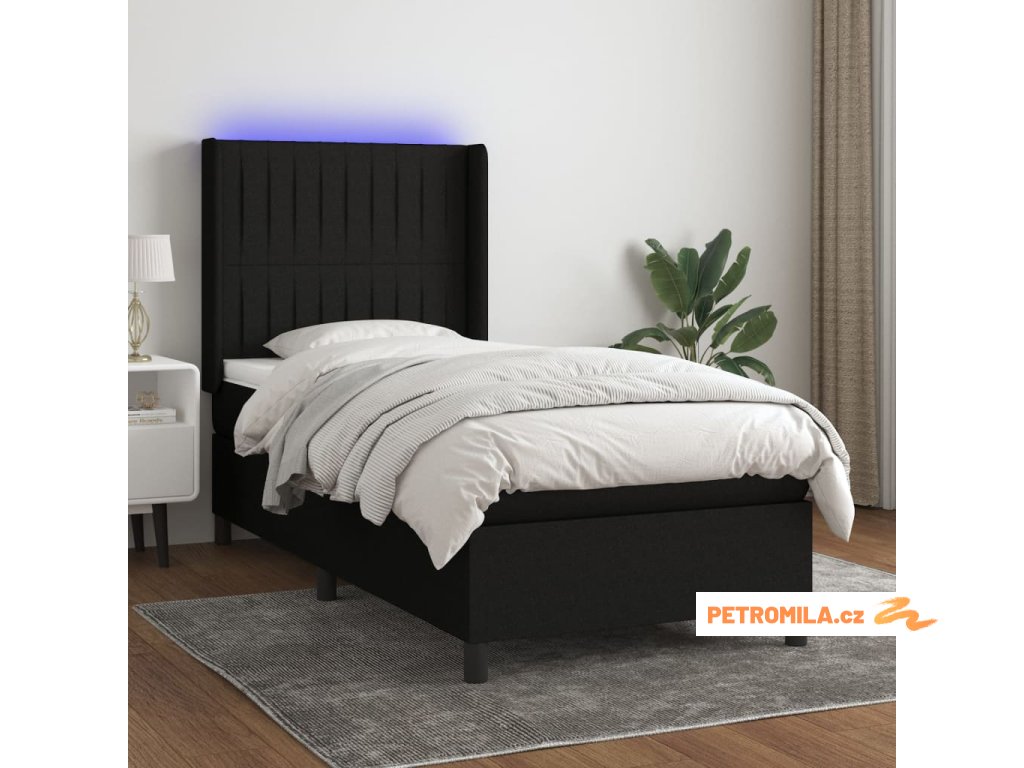 Box spring postel s matrací a LED černá 90x200 cm textil