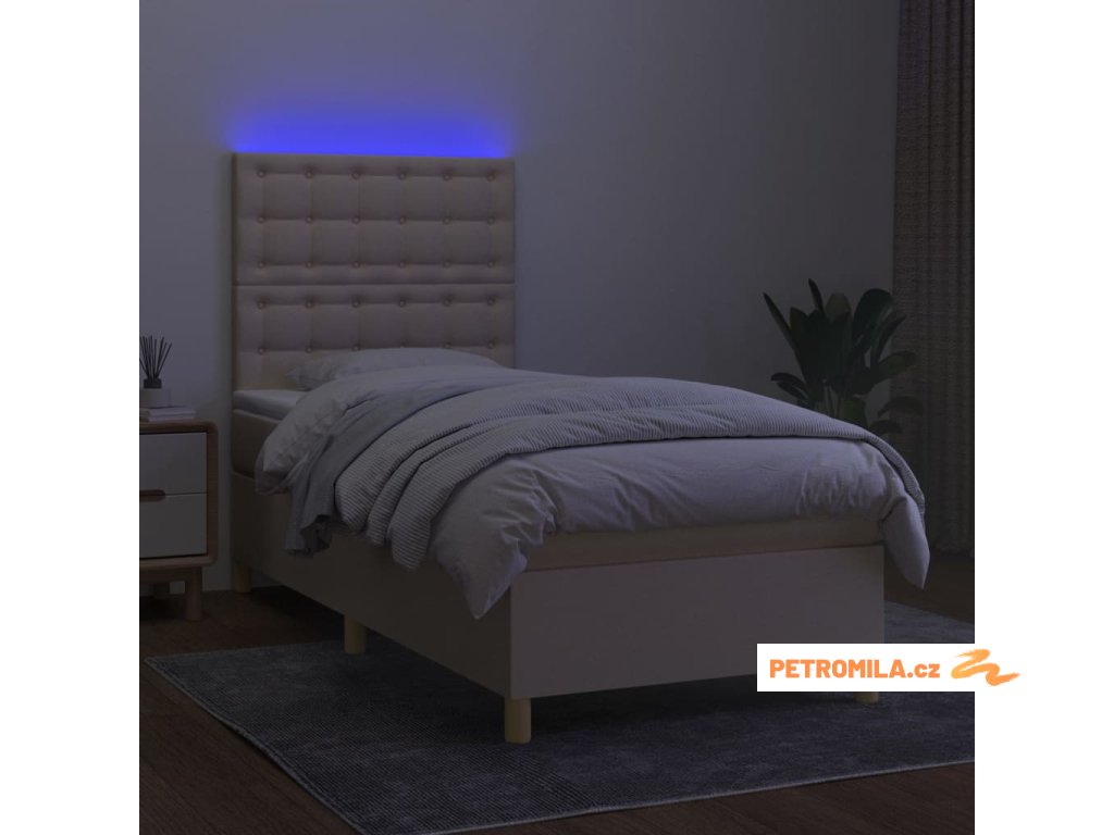 Box spring postel s matrací a LED krémová 100x200 cm textil