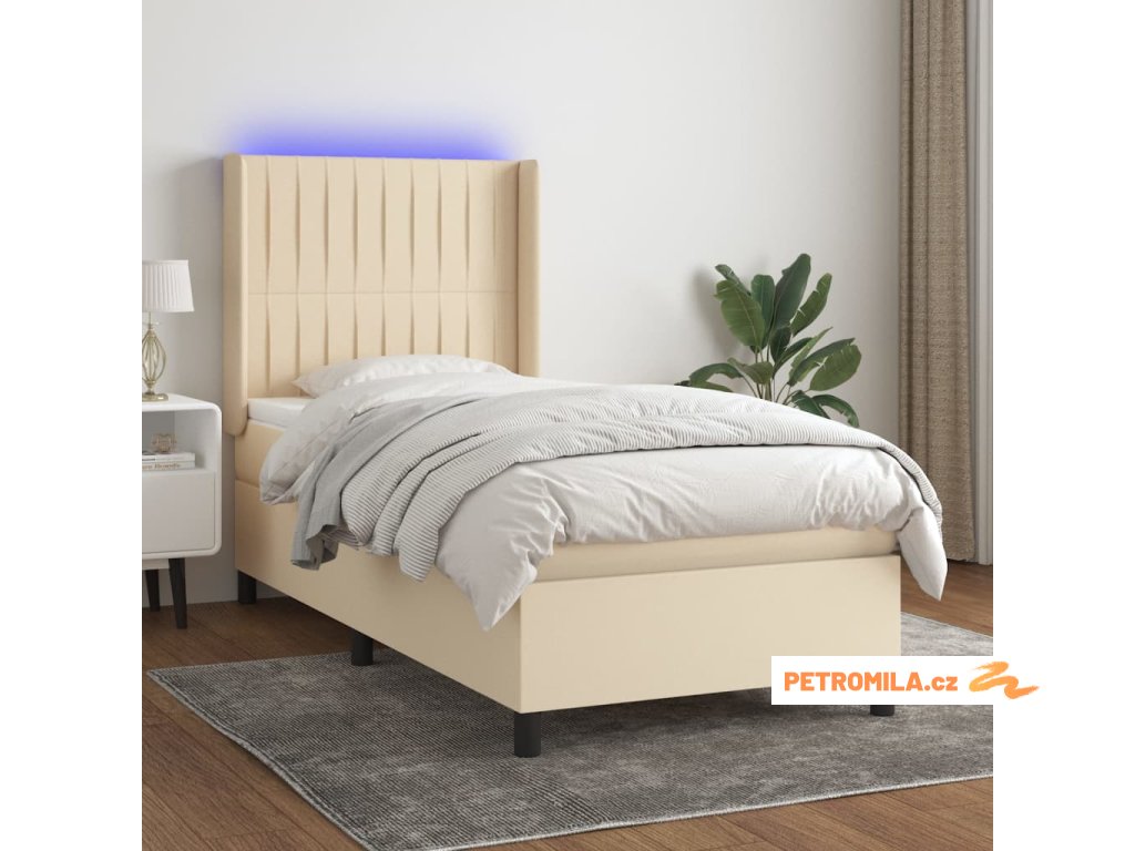 Box spring postel s matrací a LED krémová 100x200 cm textil
