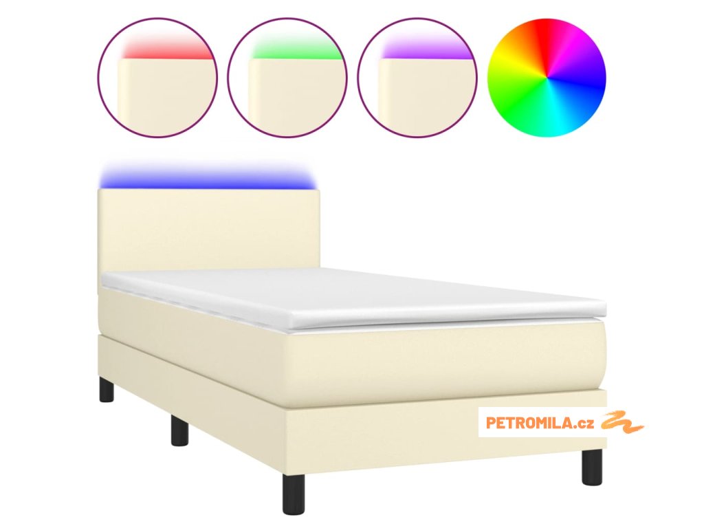 Box spring postel s matrací a LED krémová 100x200 cm umělá kůže