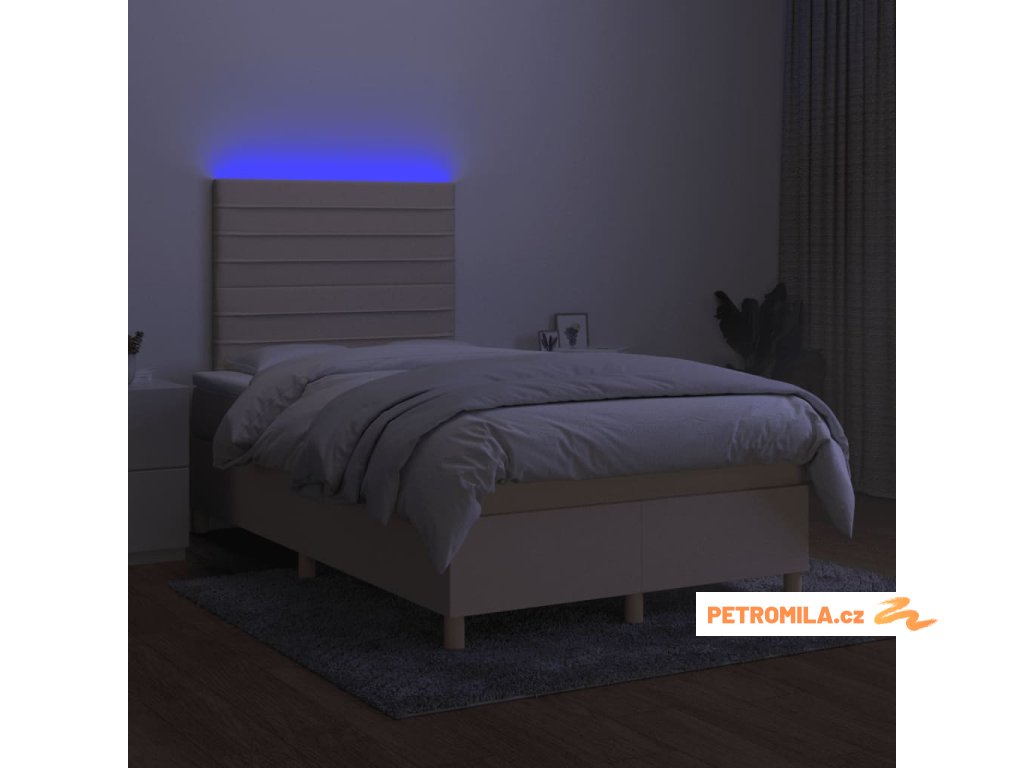 Box spring postel s matrací a LED krémová 120 x 200 cm textil