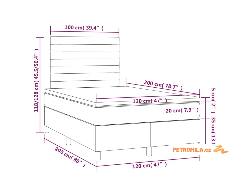 - Rozměry: 120 x 200 x 20 cm (Š x D x V)