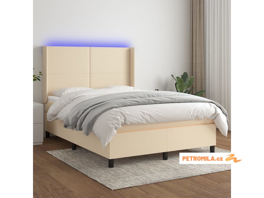 Box spring postel s matrací a LED krémová 140x190 cm textil
