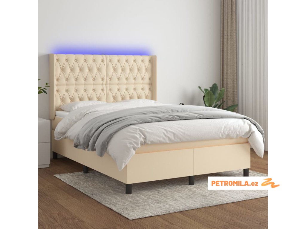 Box spring postel s matrací a LED krémová 140x190 cm textil