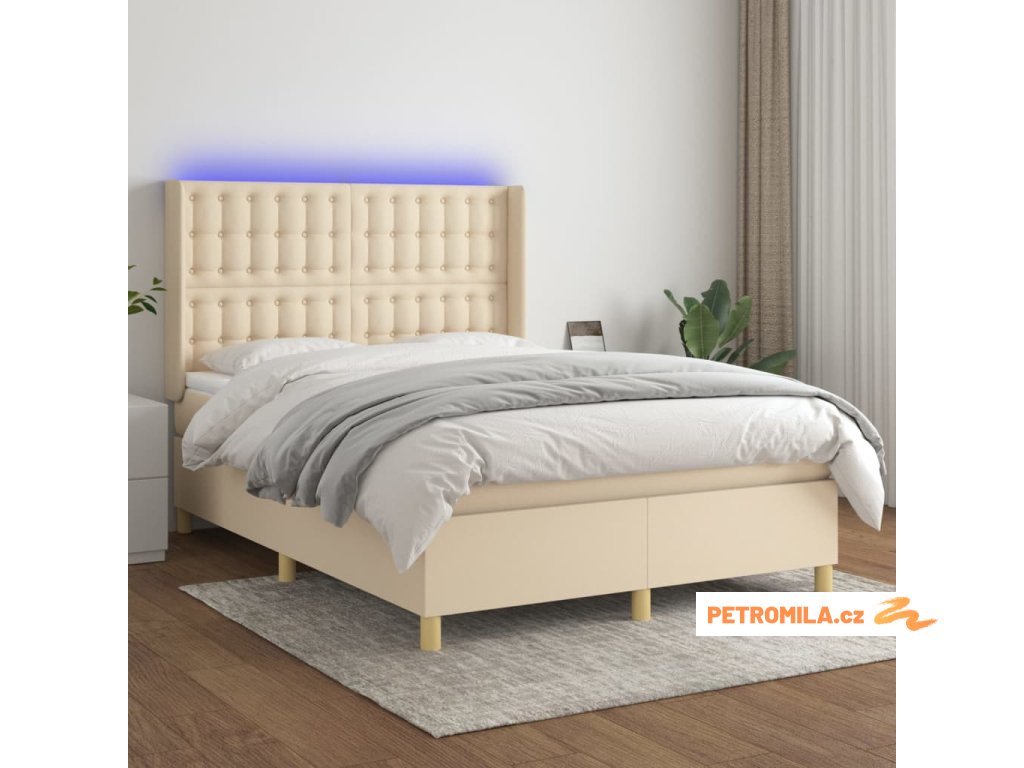 Box spring postel s matrací a LED krémová 140x190 cm textil