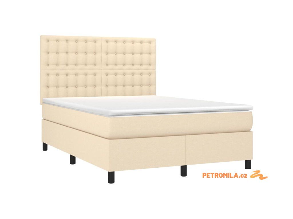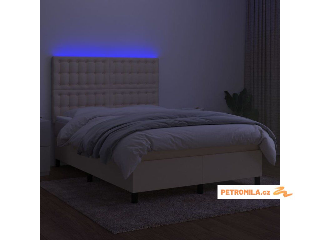 Box spring postel s matrací a LED krémová 140x200 cm textil