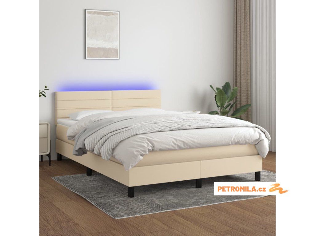 Box spring postel s matrací a LED krémová 140x200 cm textil