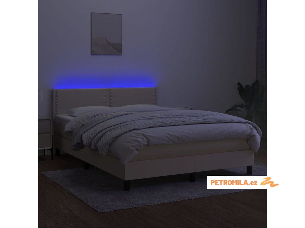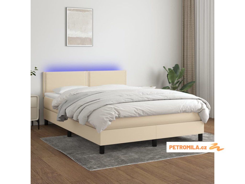 Box spring postel s matrací a LED krémová 140x200 cm textil