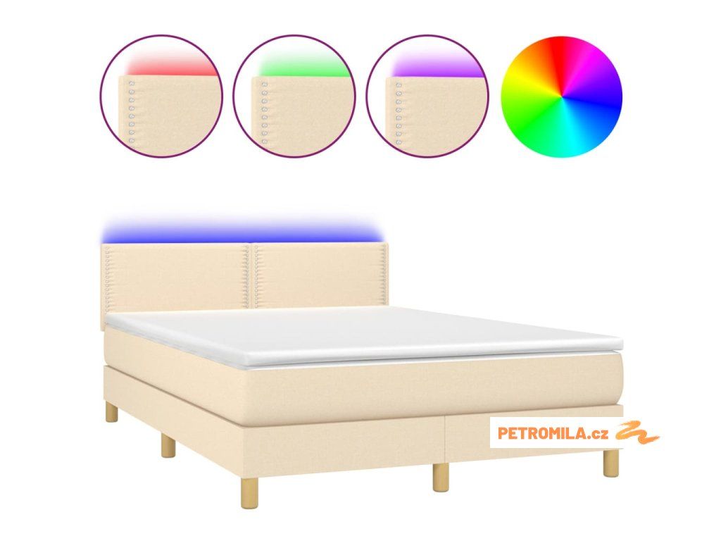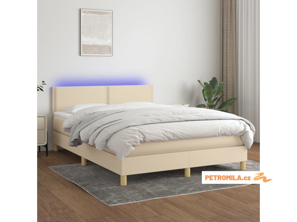Box spring postel s matrací a LED krémová 140x200 cm textil