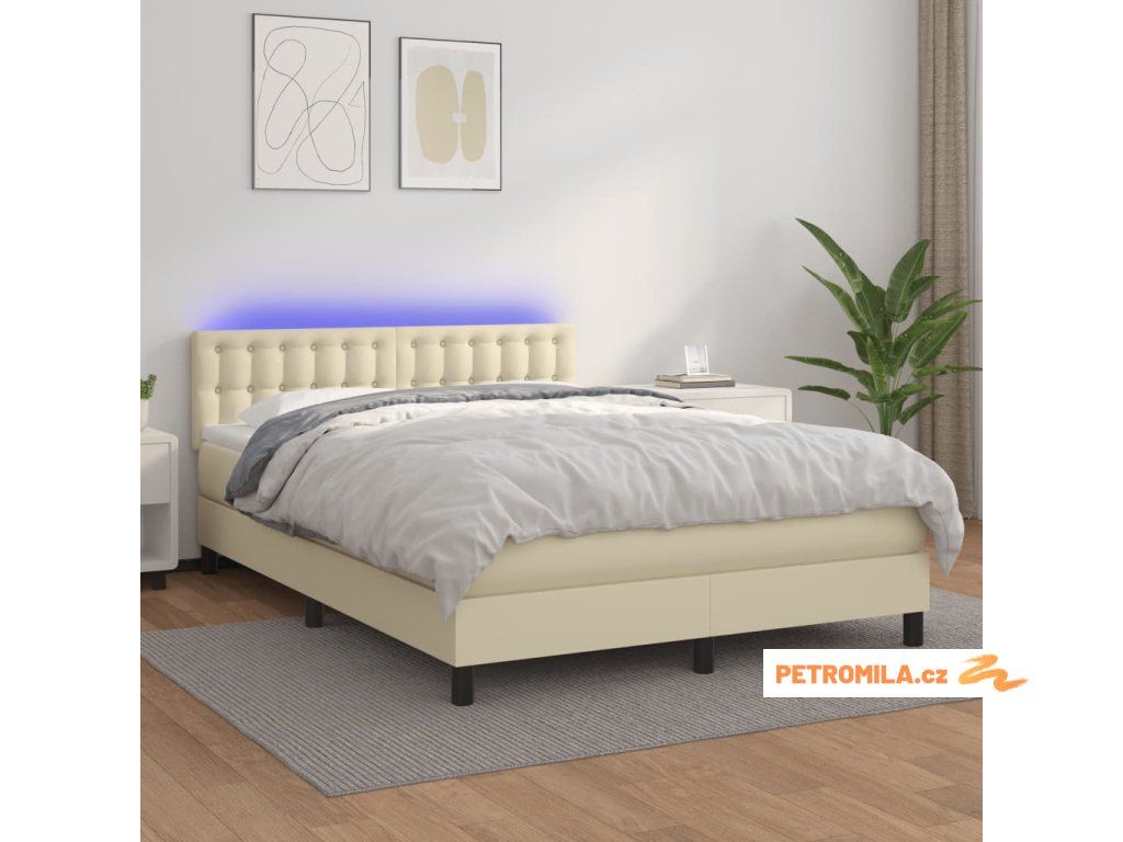 Box spring postel s matrací a LED krémová 140x200 cm umělá kůže