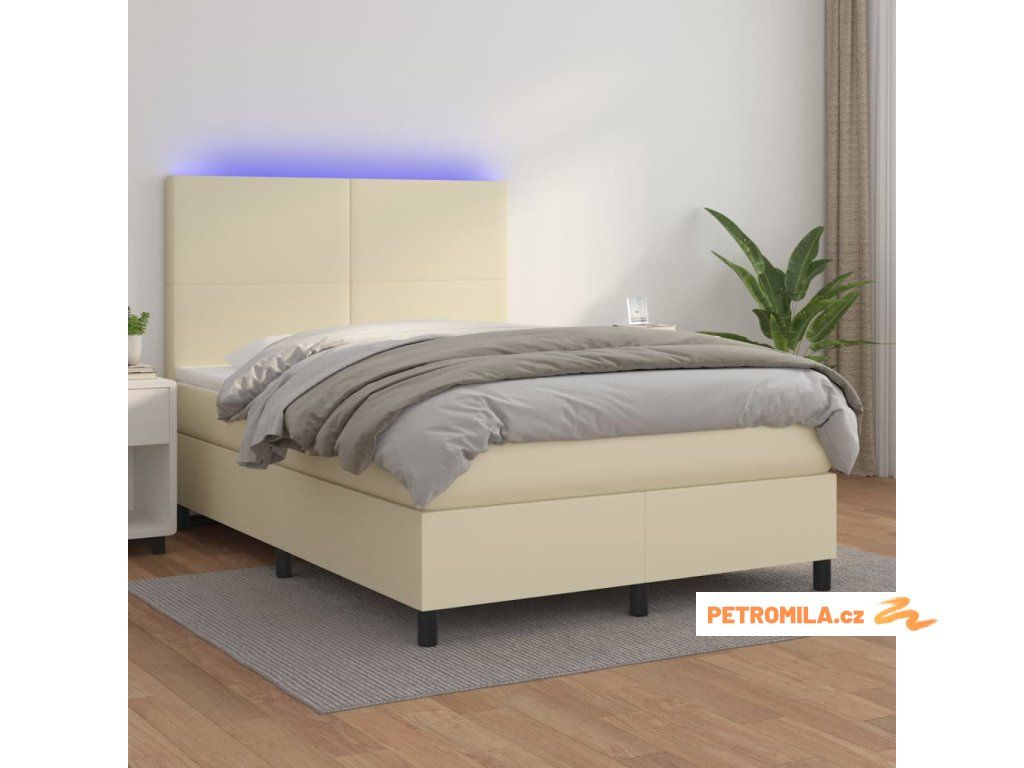Box spring postel s matrací a LED krémová 140x200 cm umělá kůže