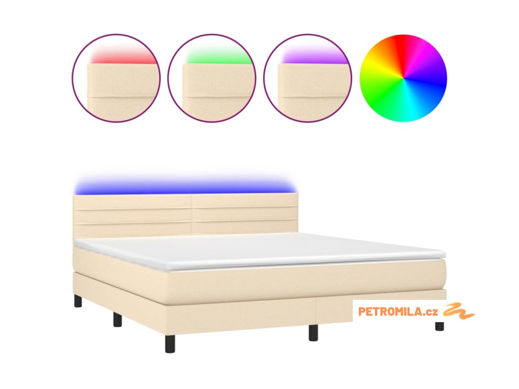 Box spring postel s matrací a LED krémová 160x200 cm textil