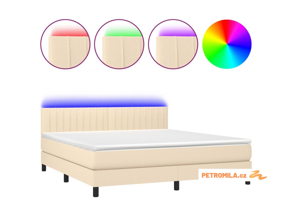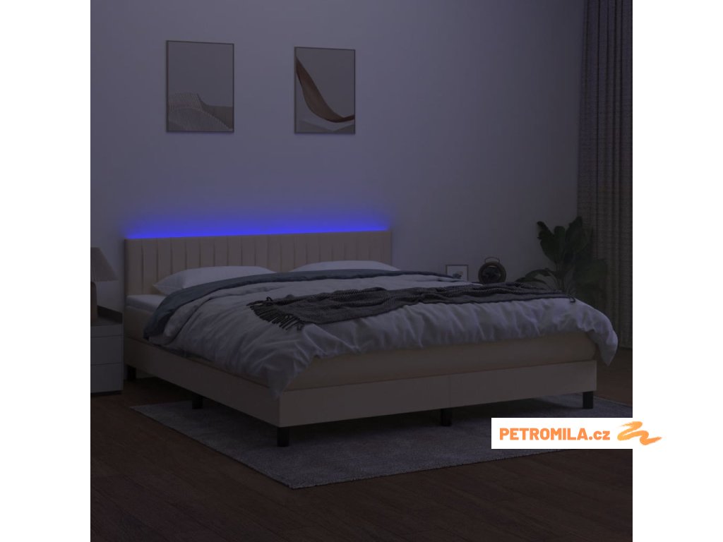 Box spring postel s matrací a LED krémová 180x200 cm textil