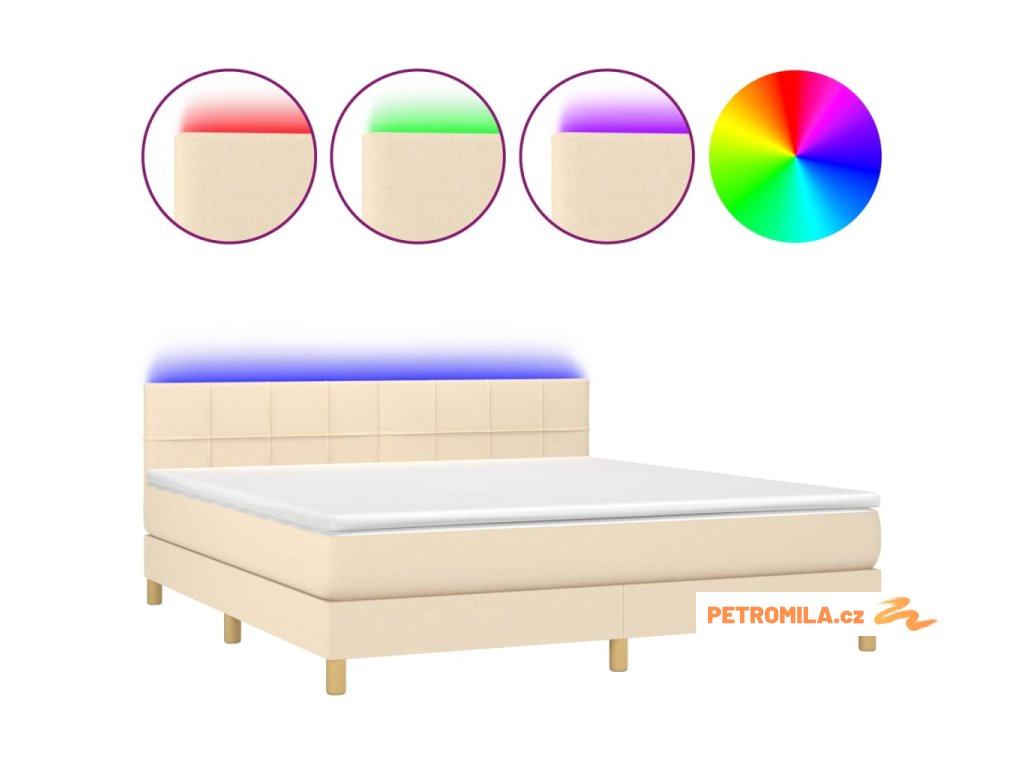 Box spring postel s matrací a LED krémová 180x200 cm textil