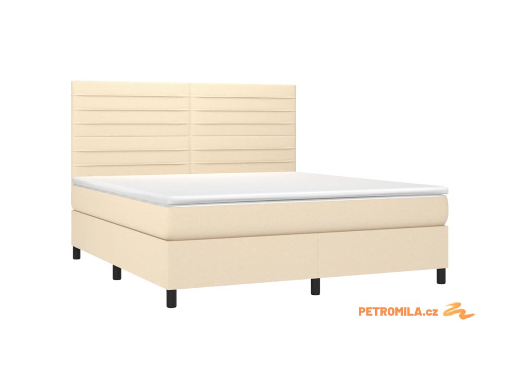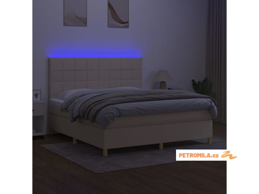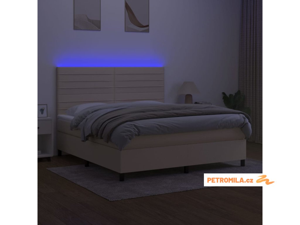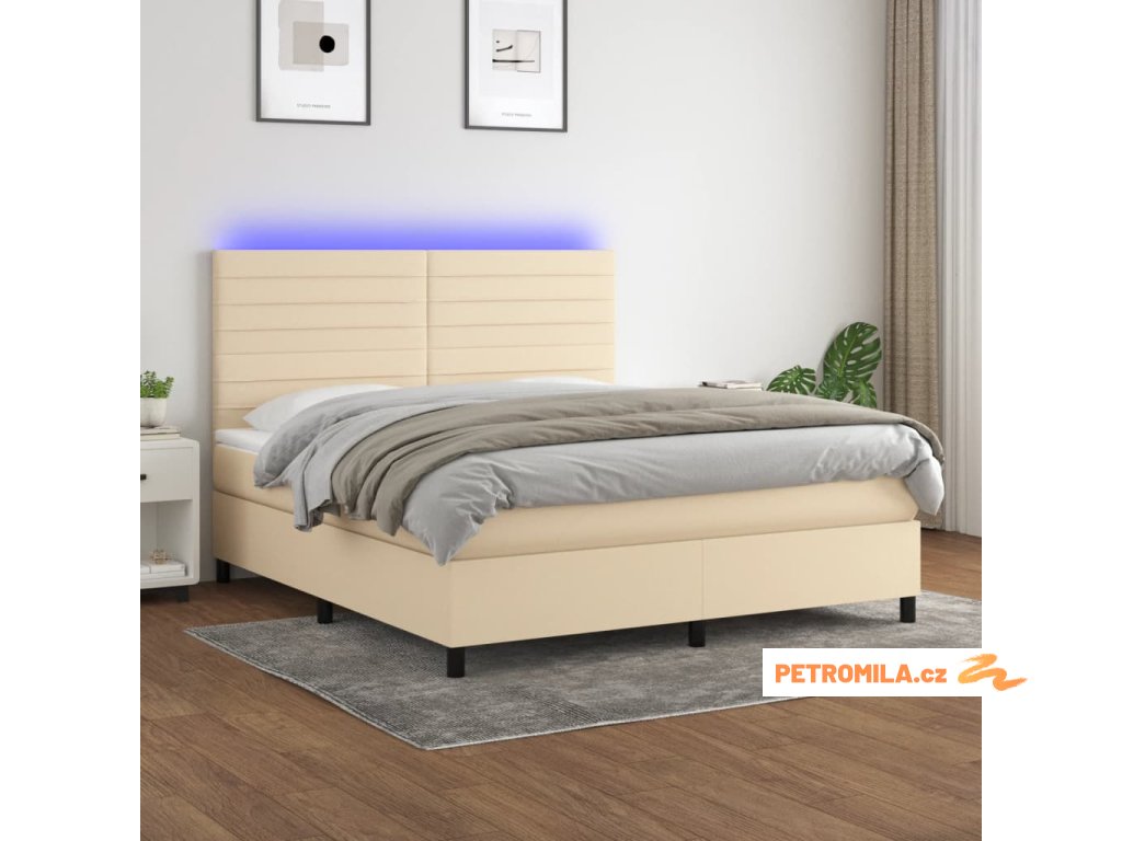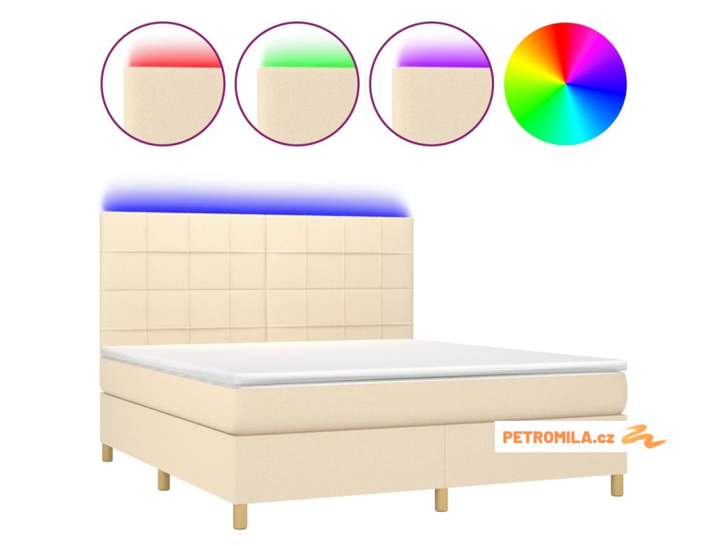Box spring postel s matrací a LED krémová 180x200 cm textil