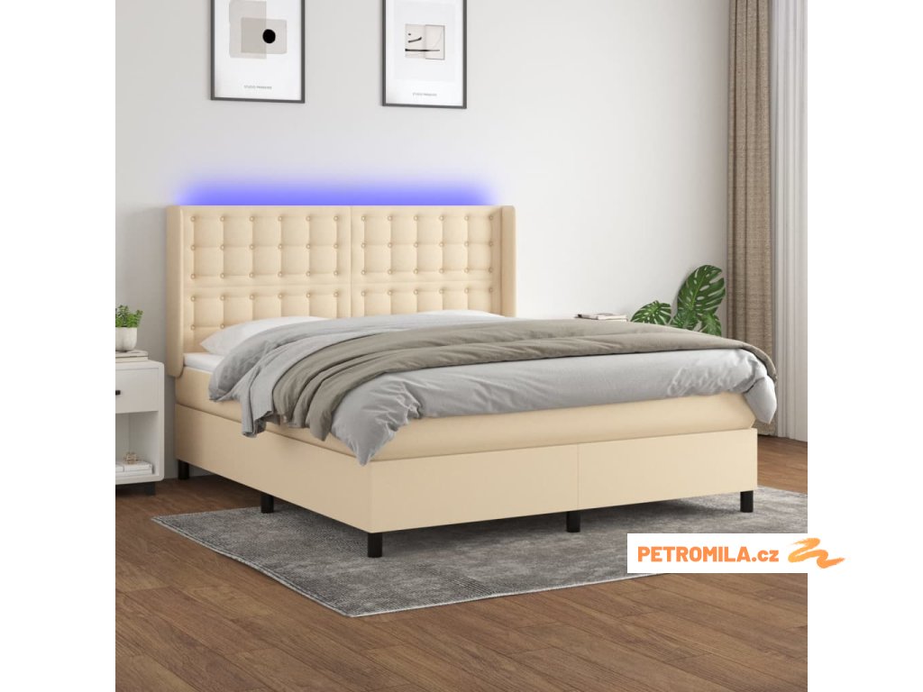 Box spring postel s matrací a LED krémová 180x200 cm textil