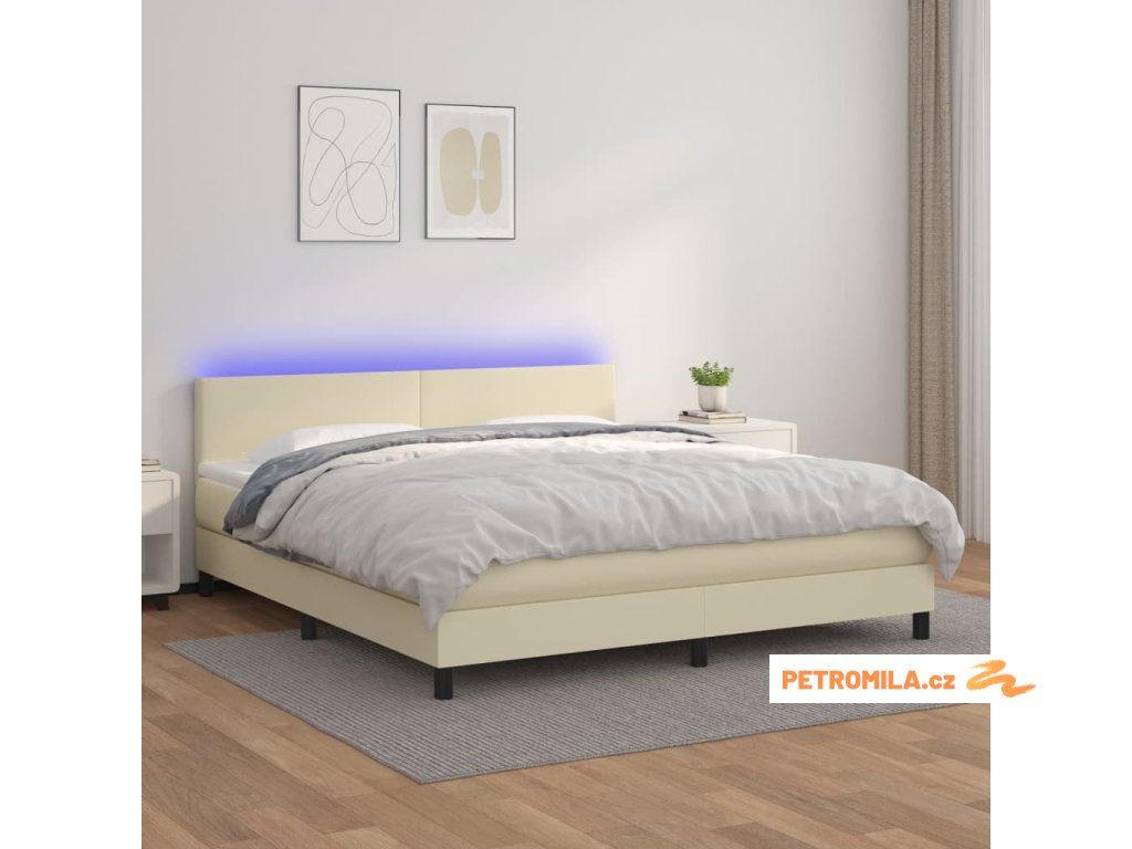 Box spring postel s matrací a LED krémová 180x200cm umělá kůže