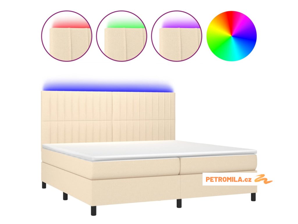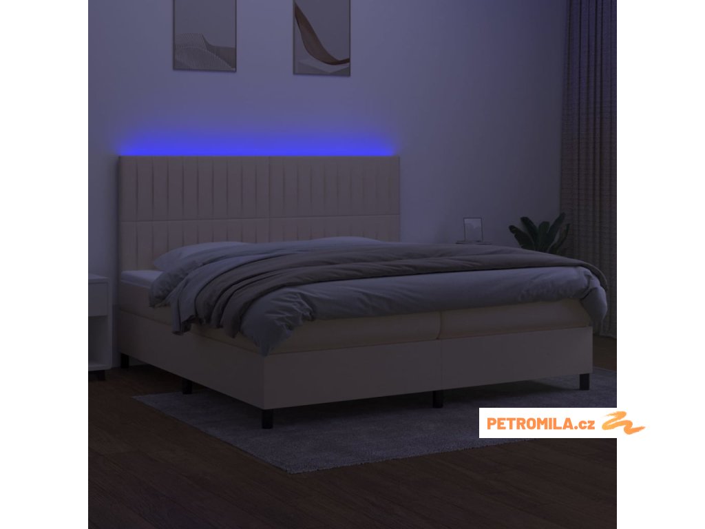 Box spring postel s matrací a LED krémová 200x200 cm textil