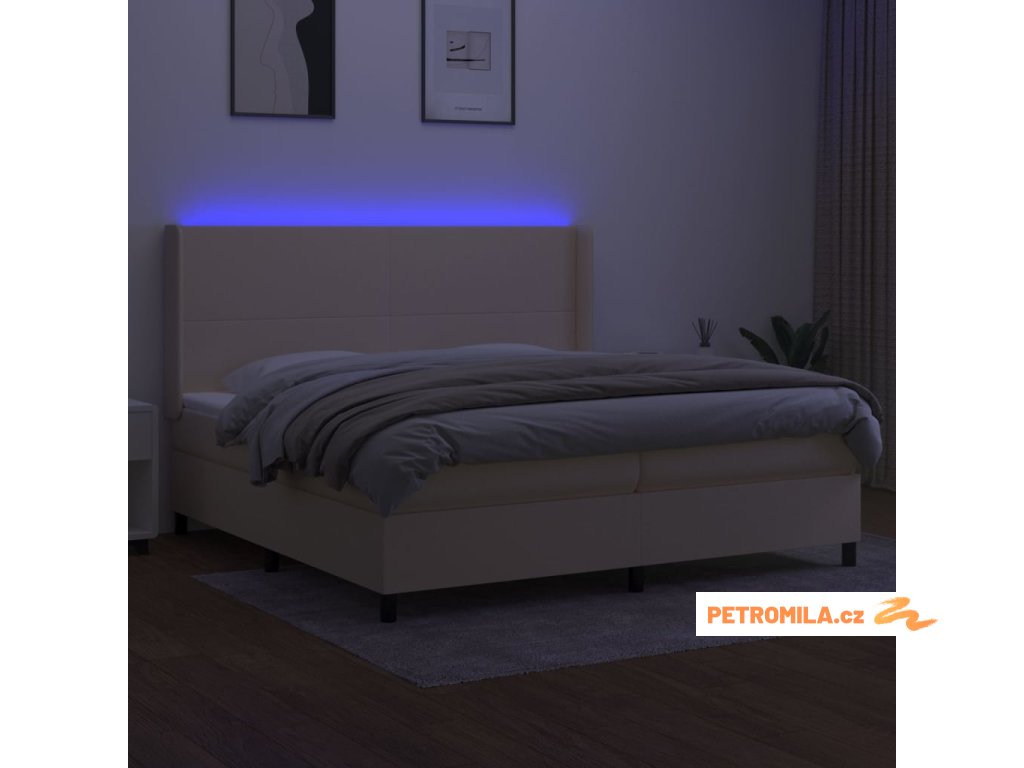 Box spring postel s matrací a LED krémová 200x200 cm textil