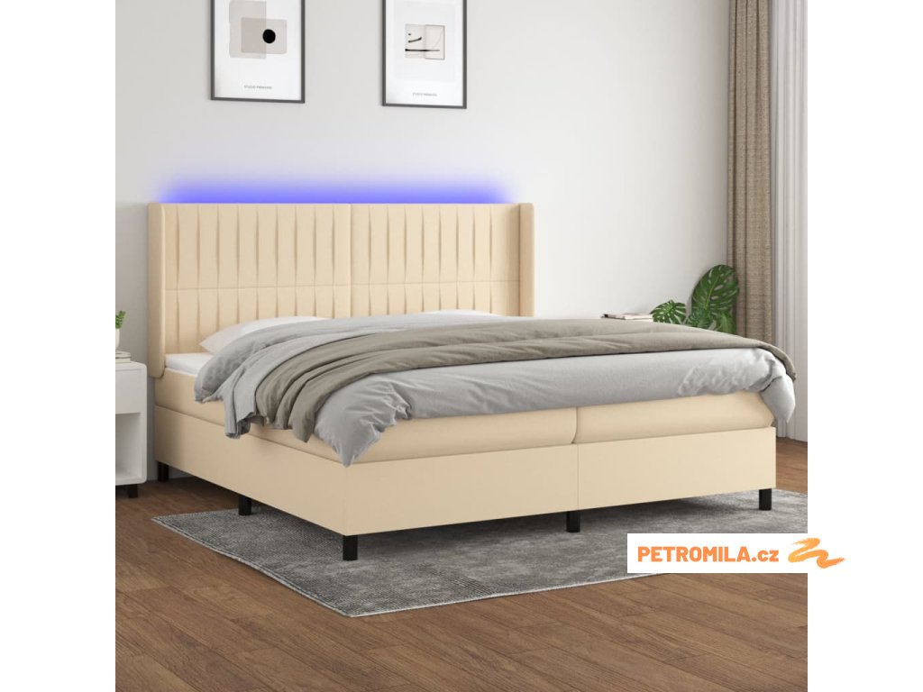 Box spring postel s matrací a LED krémová 200x200 cm textil