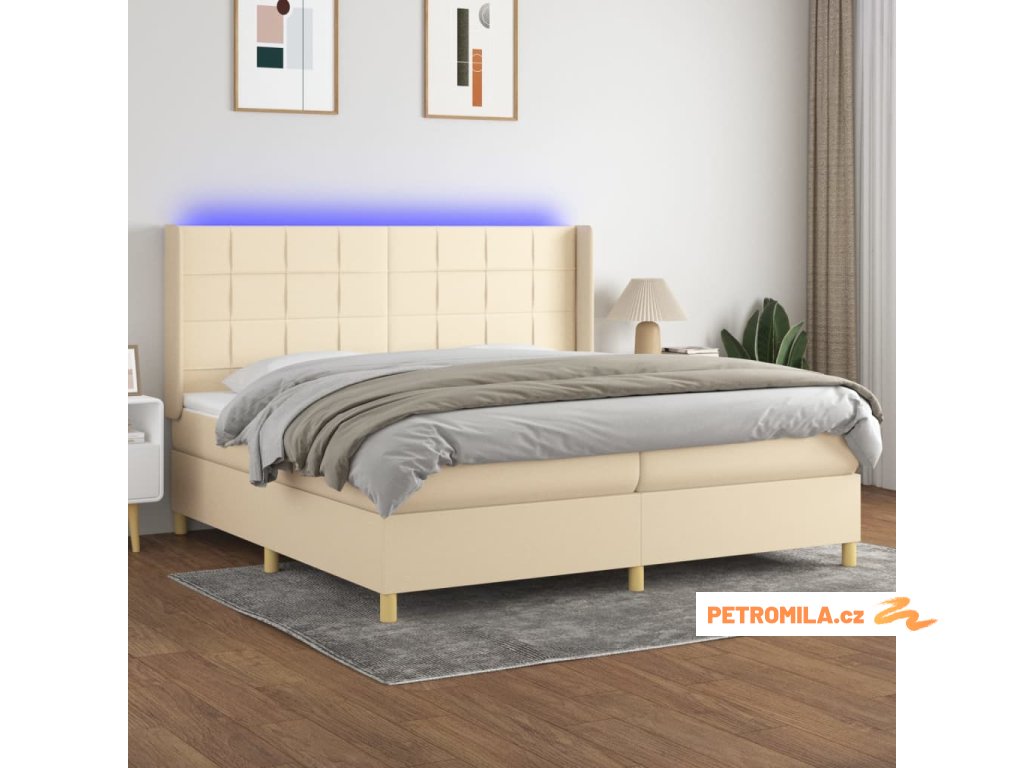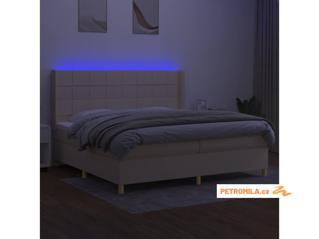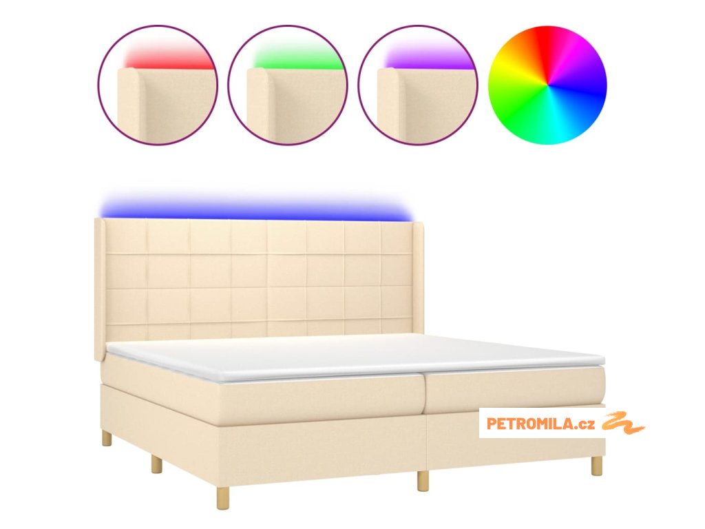 Box spring postel s matrací a LED krémová 200x200 cm textil