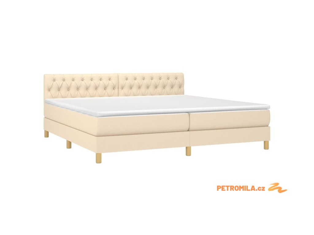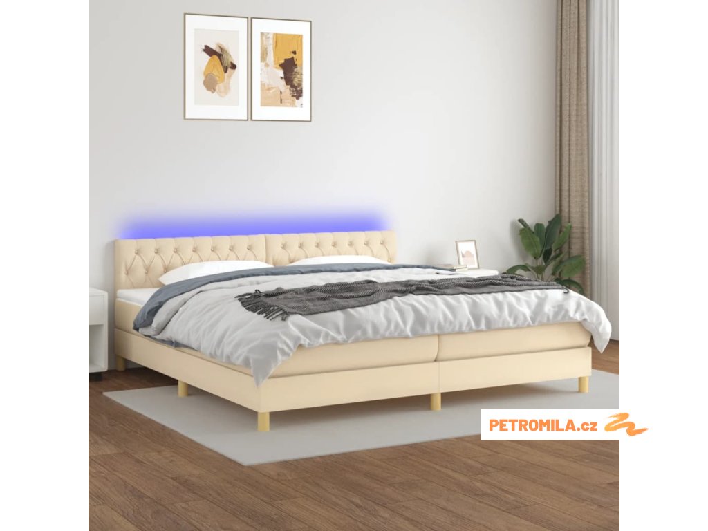 Box spring postel s matrací a LED krémová 200x200 cm textil
