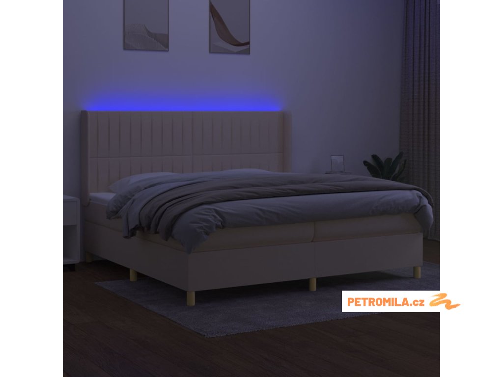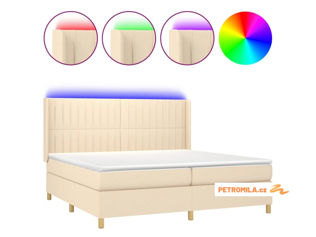 Box spring postel s matrací a LED krémová 200x200 cm textil