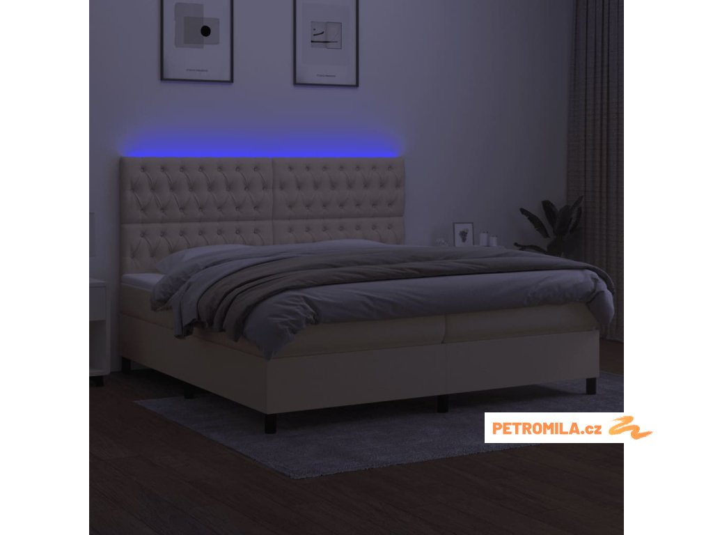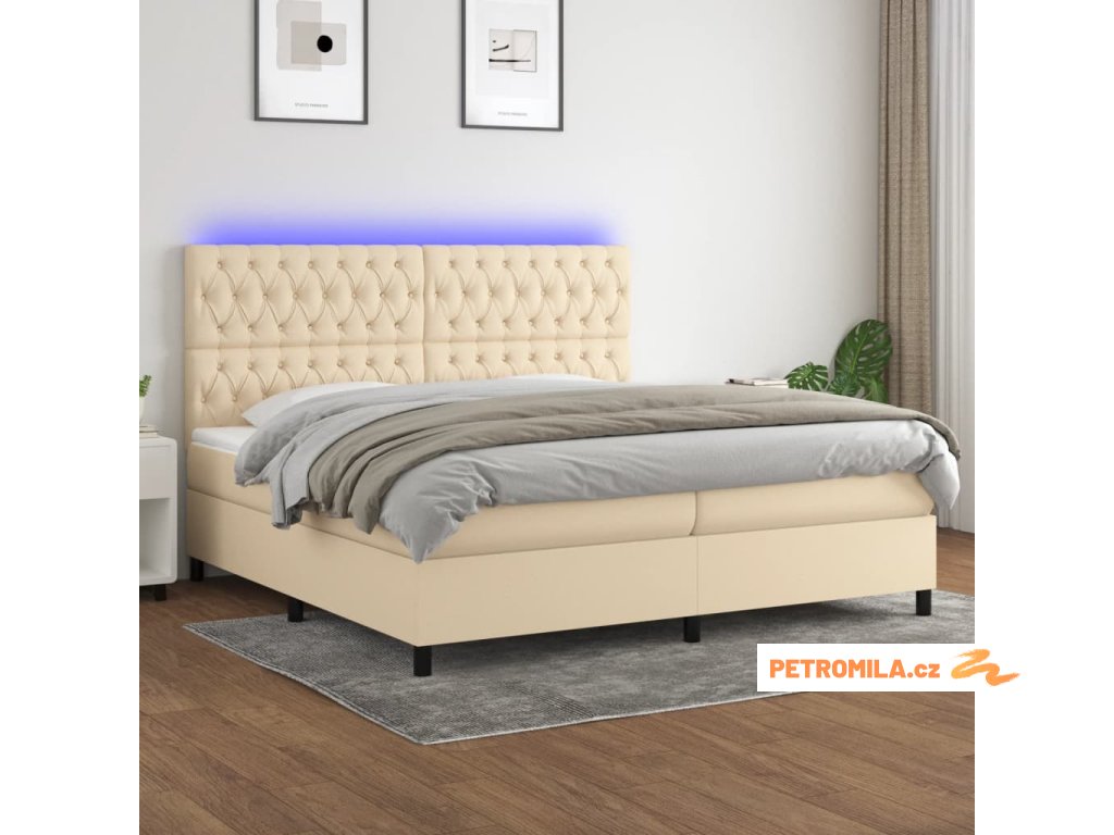 Box spring postel s matrací a LED krémová 200x200 cm textil