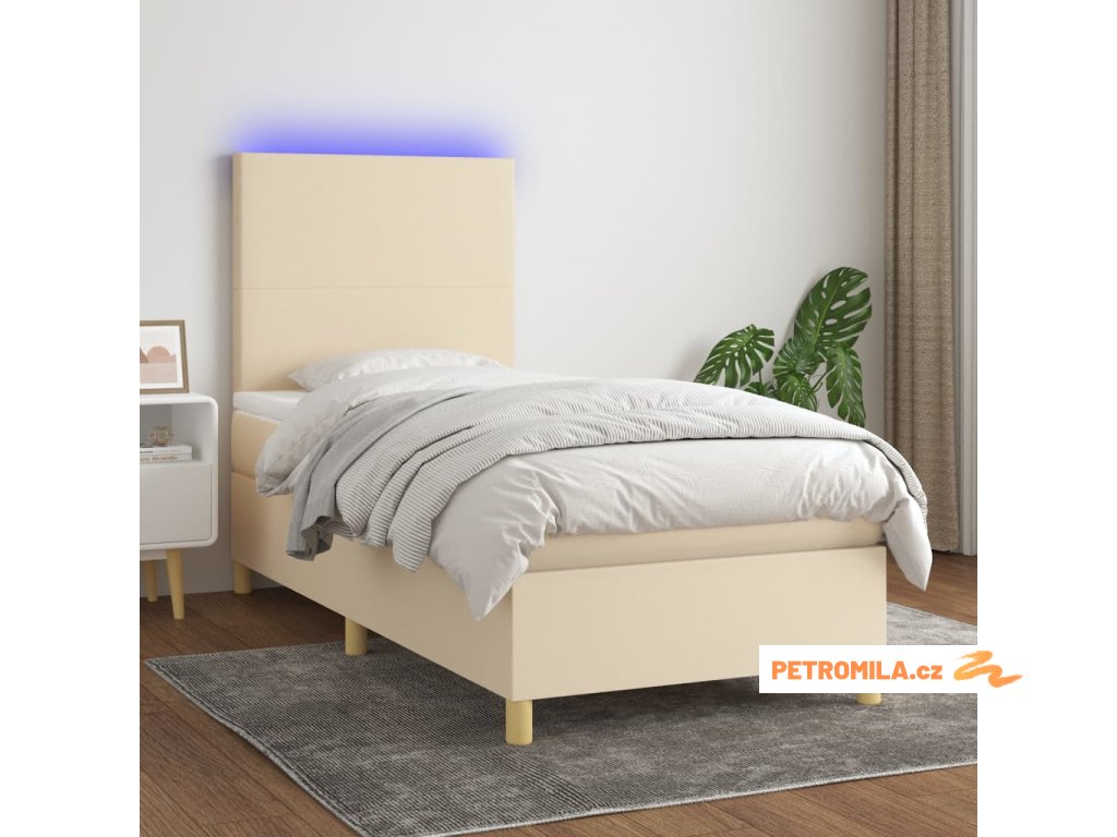 Box spring postel s matrací a LED krémová 80 x 200 cm textil