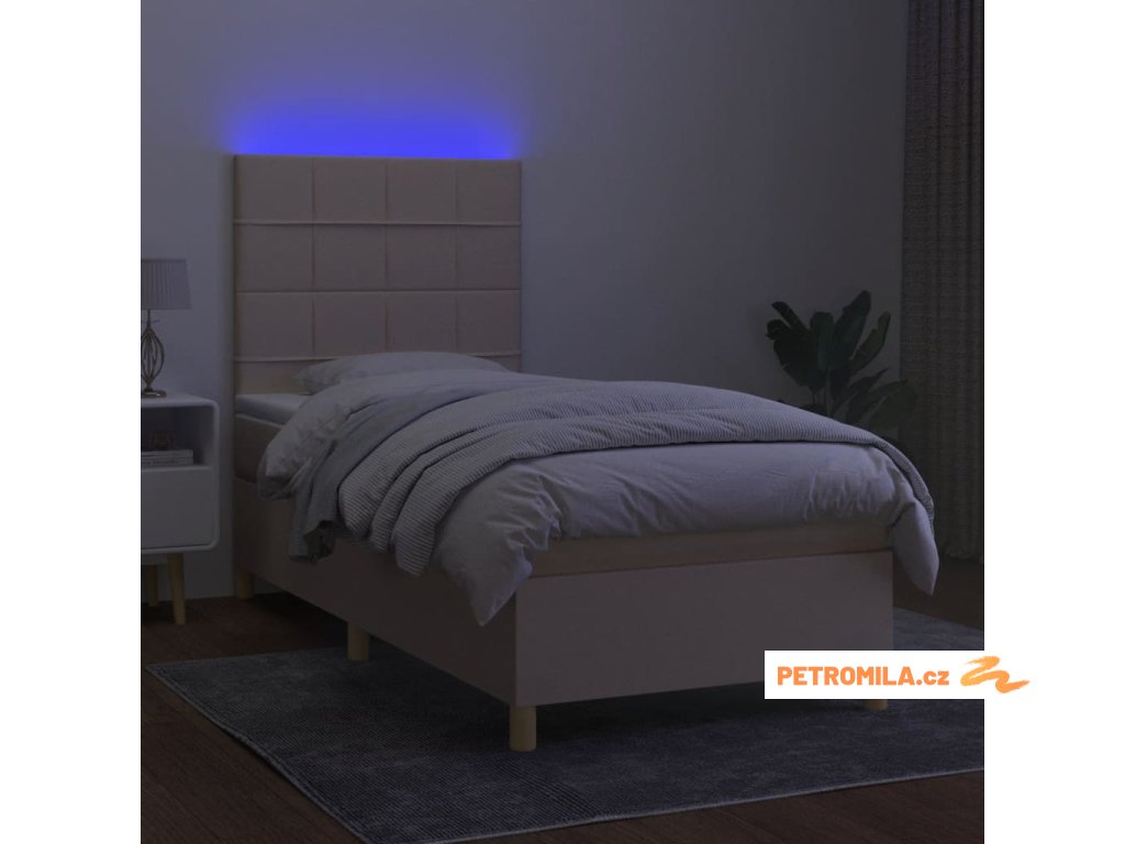 Box spring postel s matrací a LED krémová 90x190 cm textil