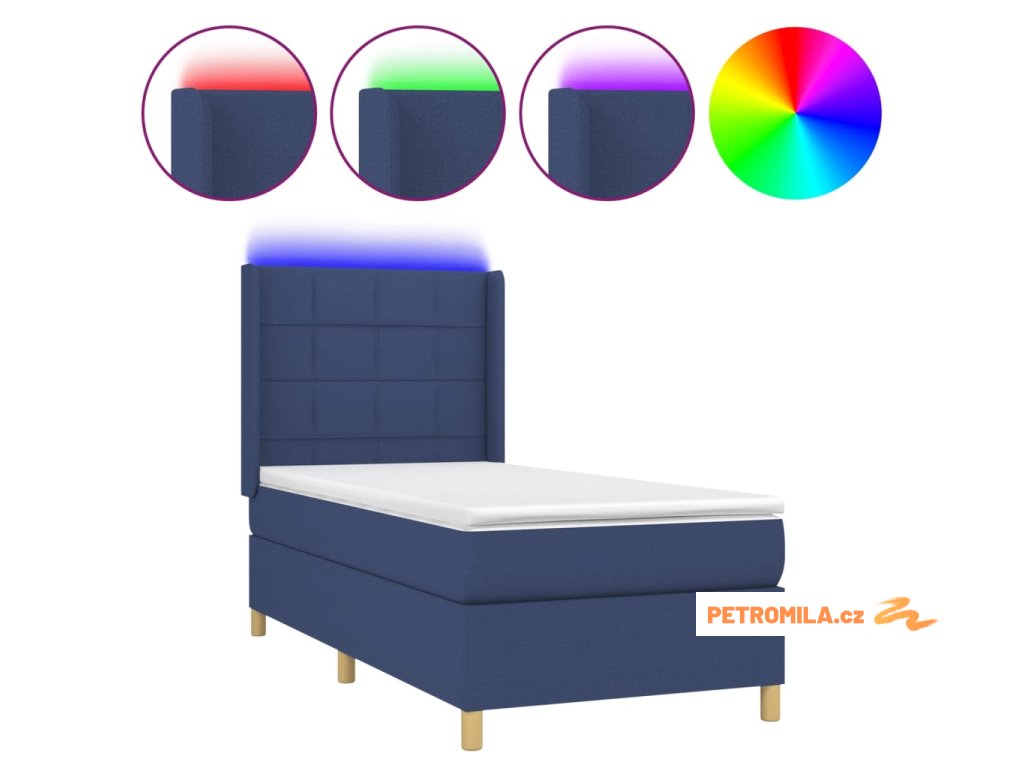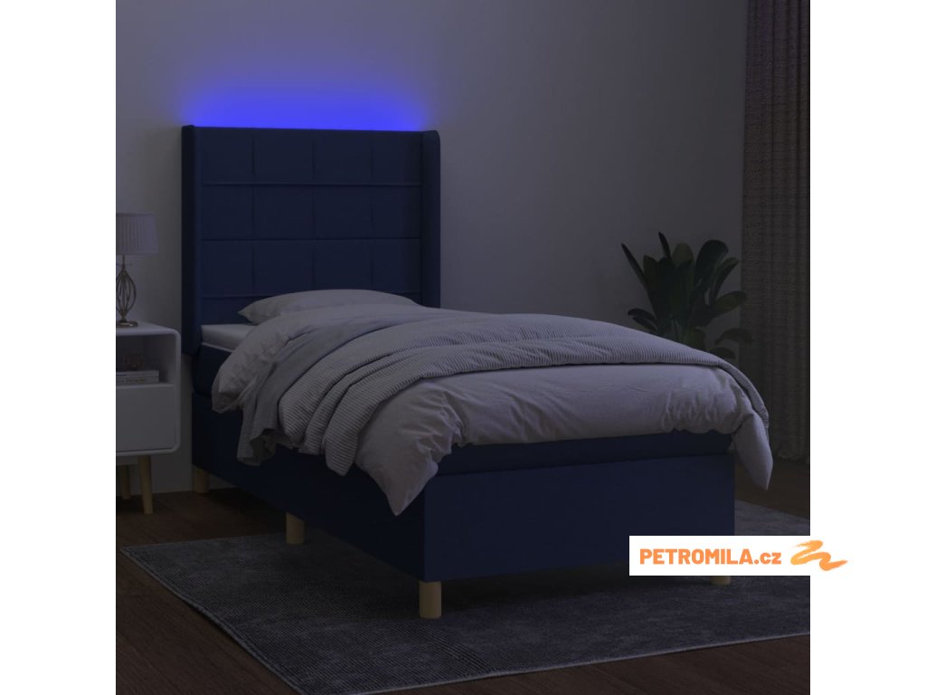 Box spring postel s matrací a LED modrá 100x200 cm textil