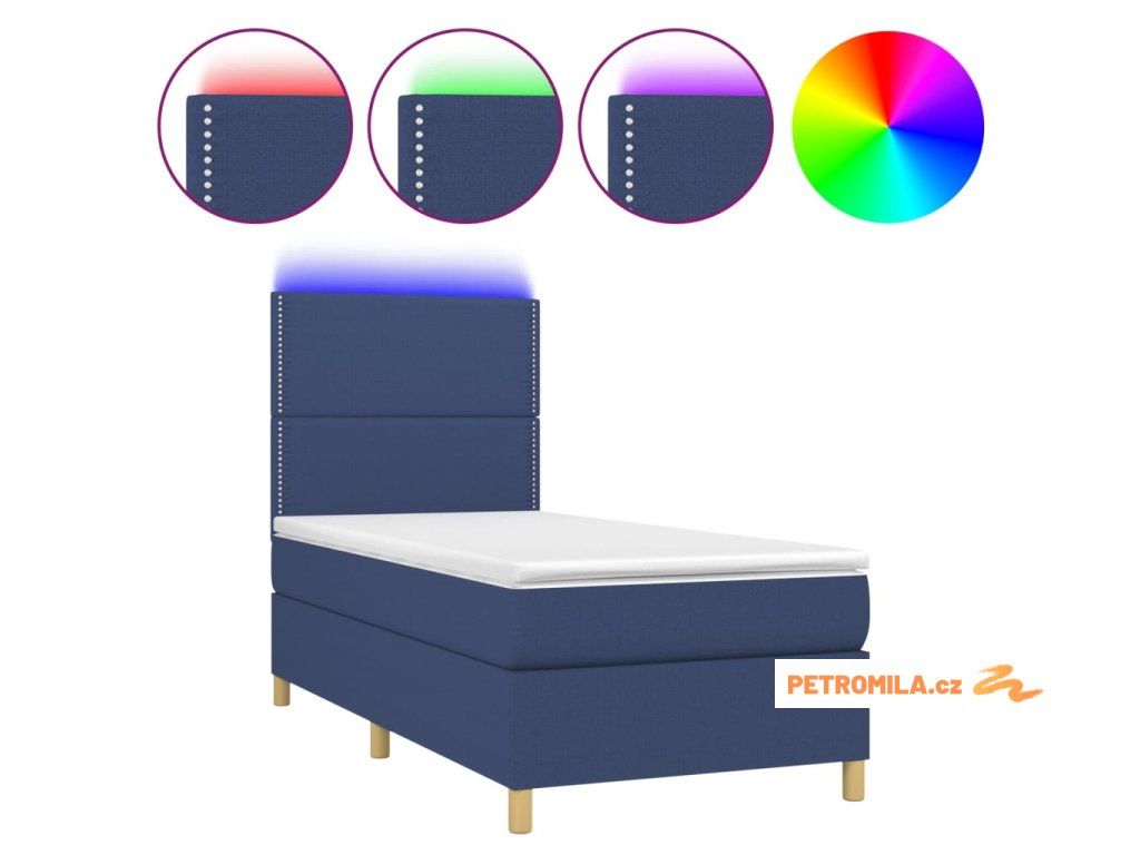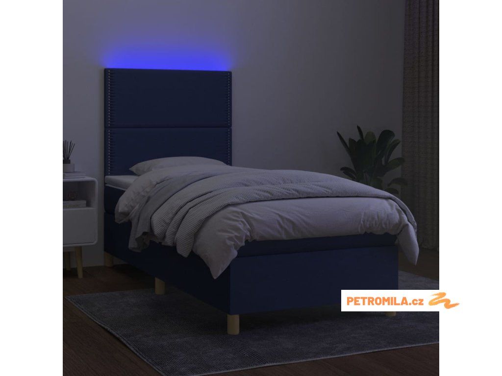 Box spring postel s matrací a LED modrá 100x200 cm textil