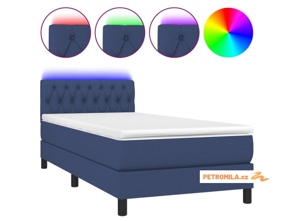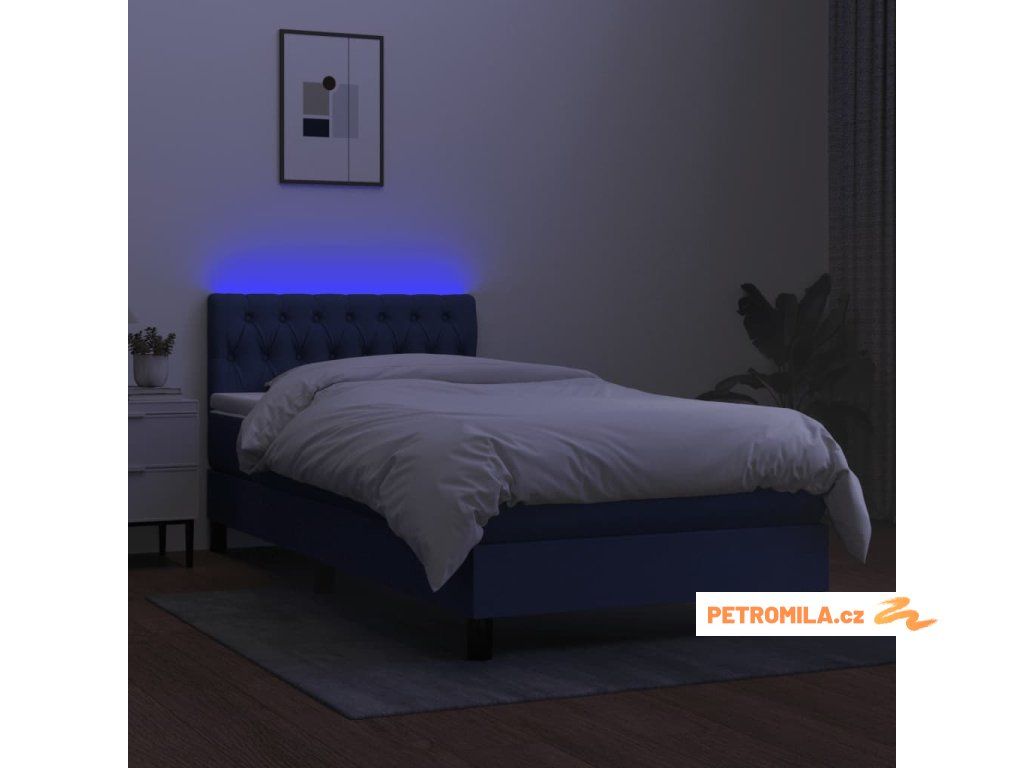 Box spring postel s matrací a LED modrá 100x200 cm textil