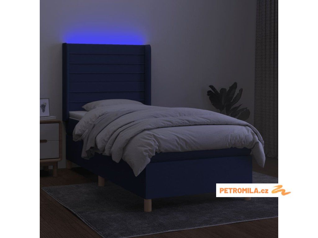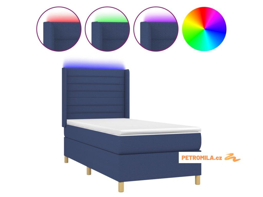 Box spring postel s matrací a LED modrá 100x200 cm textil