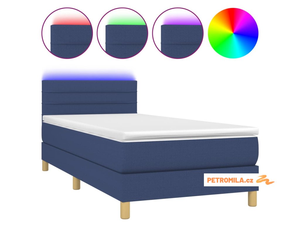 Box spring postel s matrací a LED modrá 100x200 cm textil