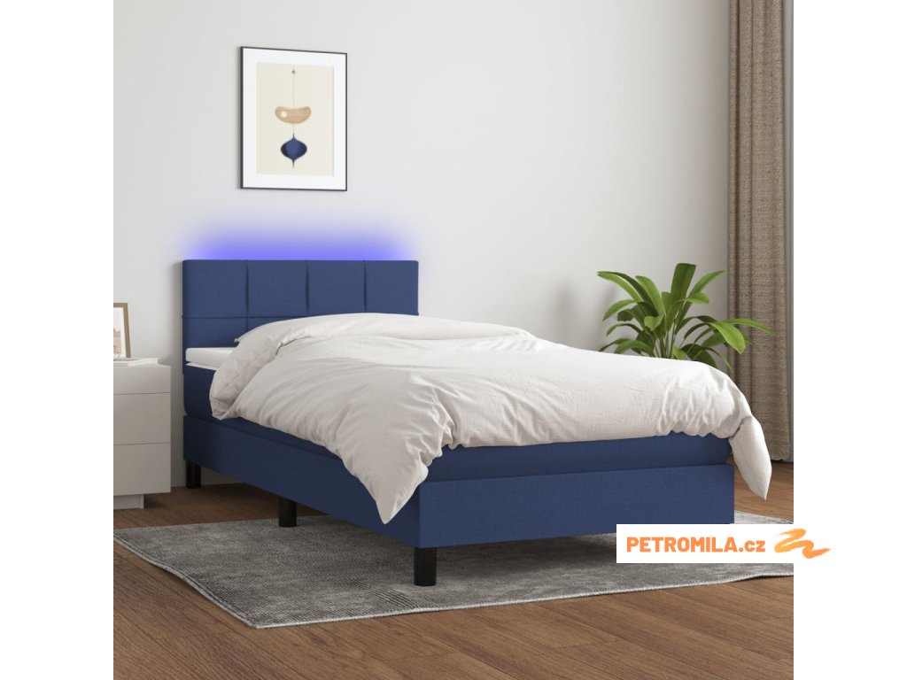 Box spring postel s matrací a LED modrá 100x200 cm textil