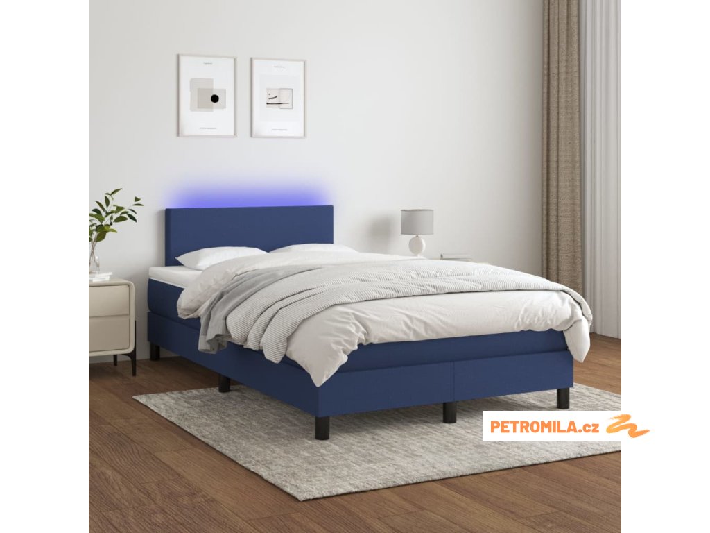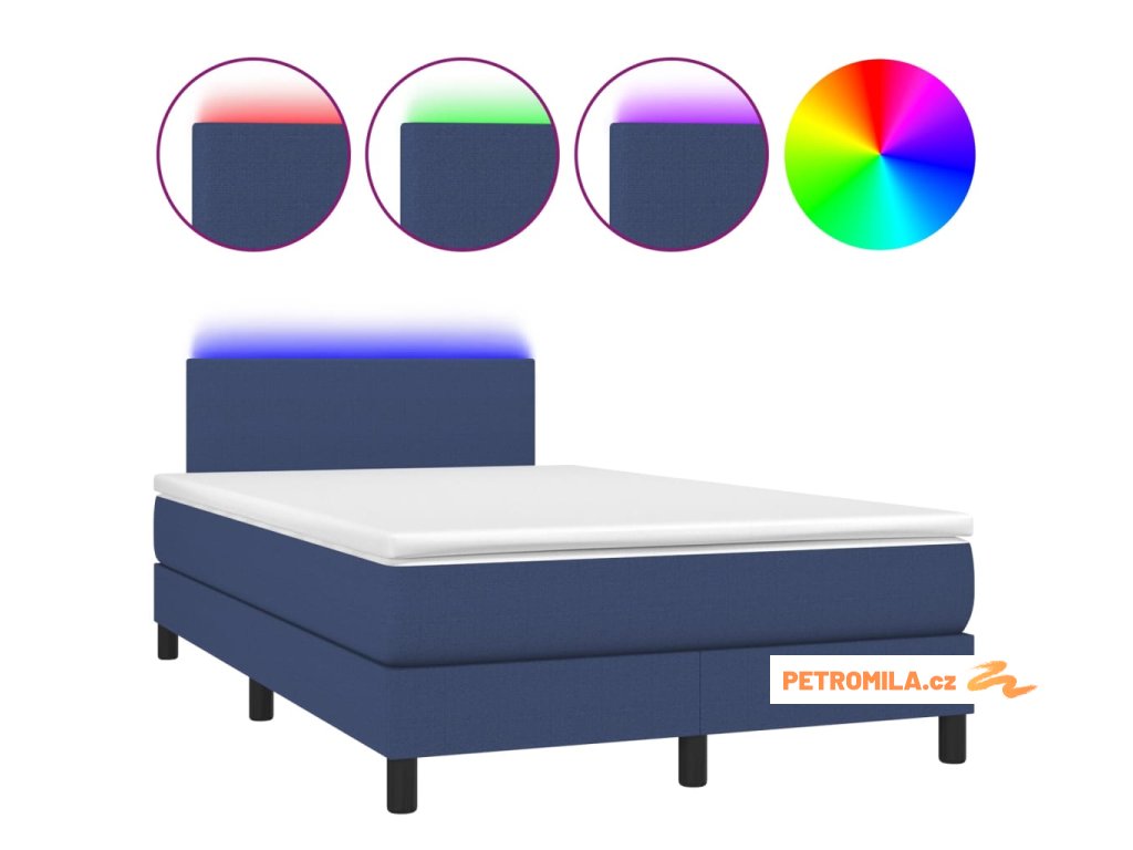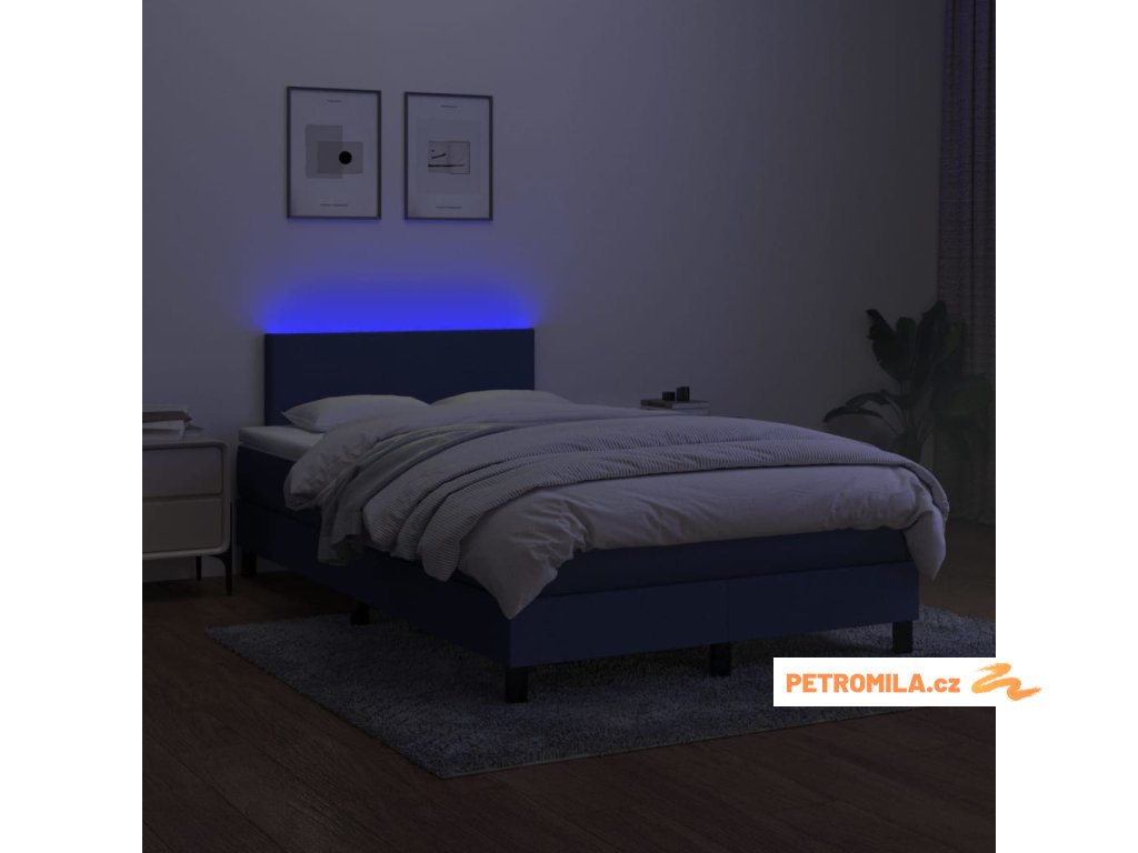 Box spring postel s matrací a LED modrá 120 x 200 cm textil