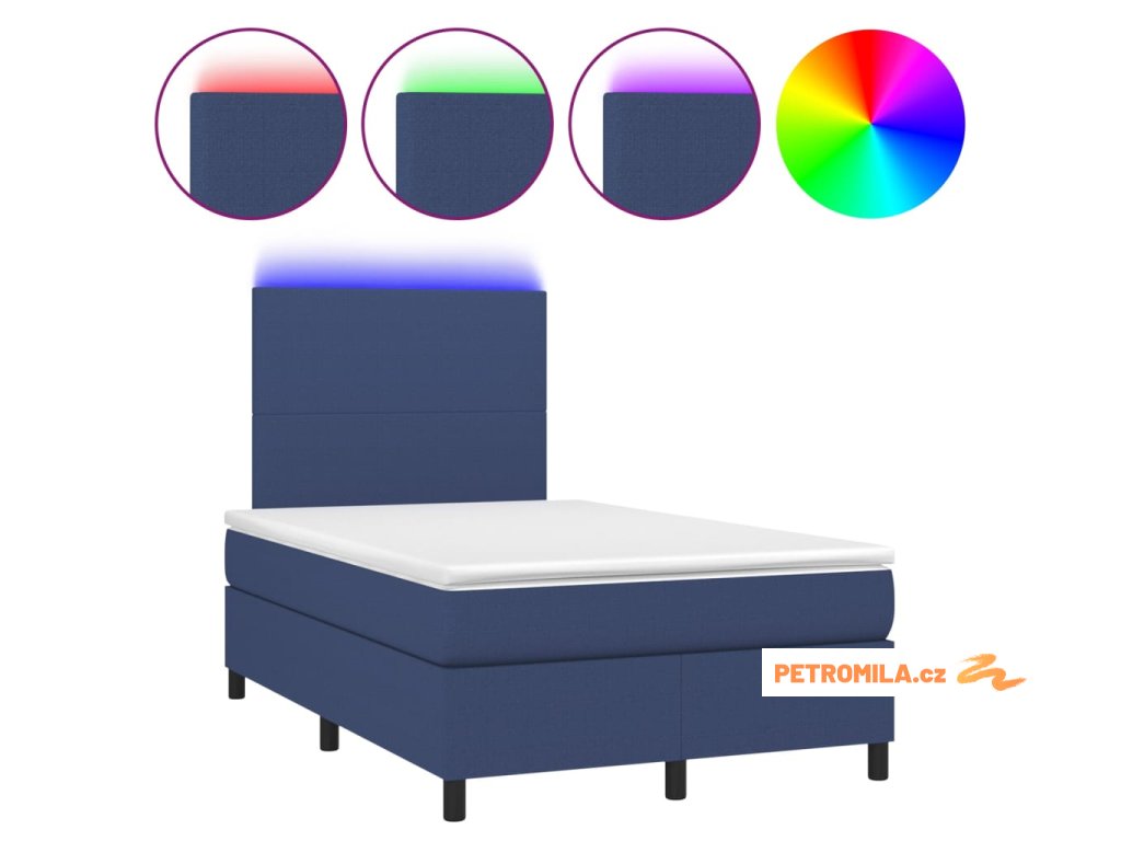 Box spring postel s matrací a LED modrá 120 x 200 cm textil