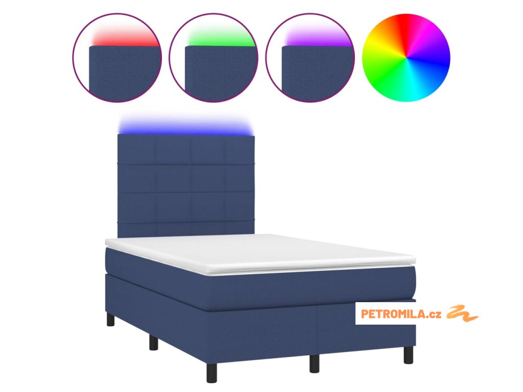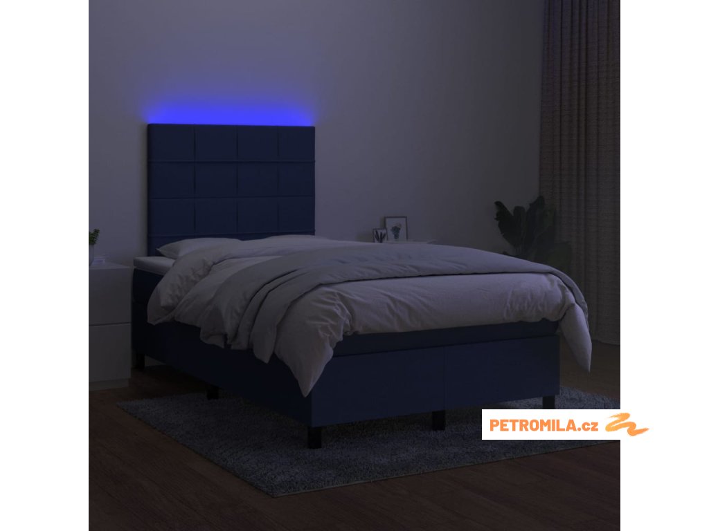 Box spring postel s matrací a LED modrá 120 x 200 cm textil